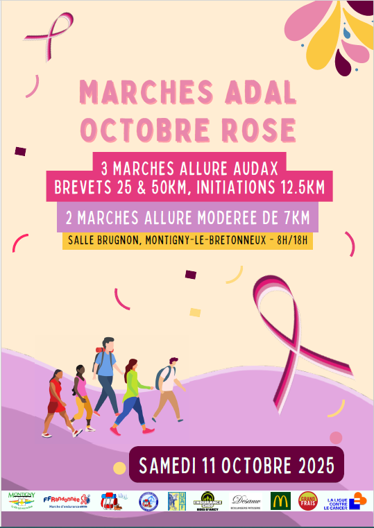 Veuillez prendre connaissance de l'évènement "Octobre Rose" organisé par l'ADAL de Montigny le Bretonneux.